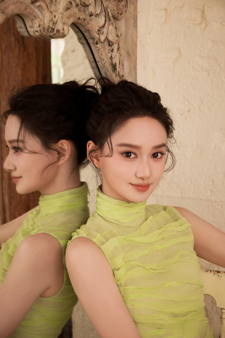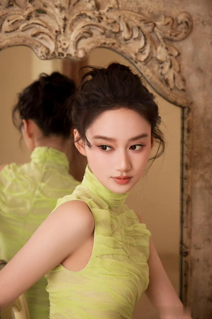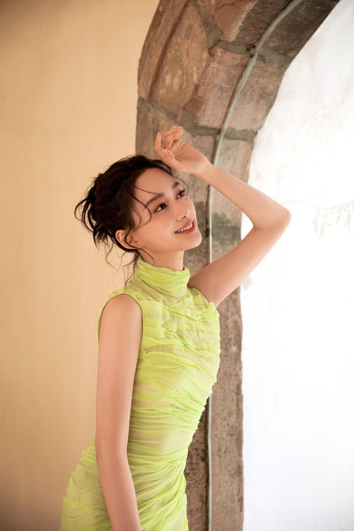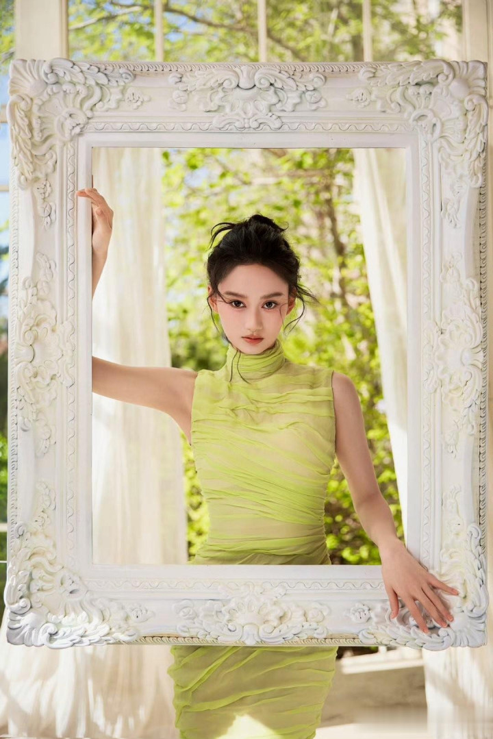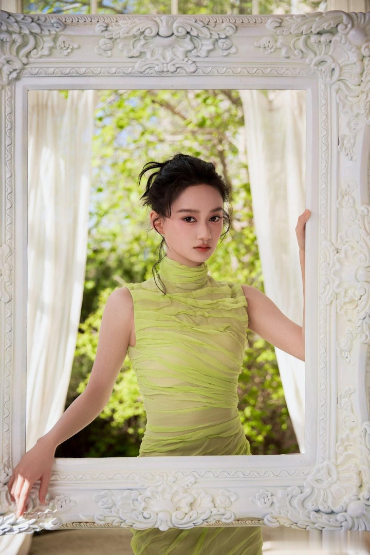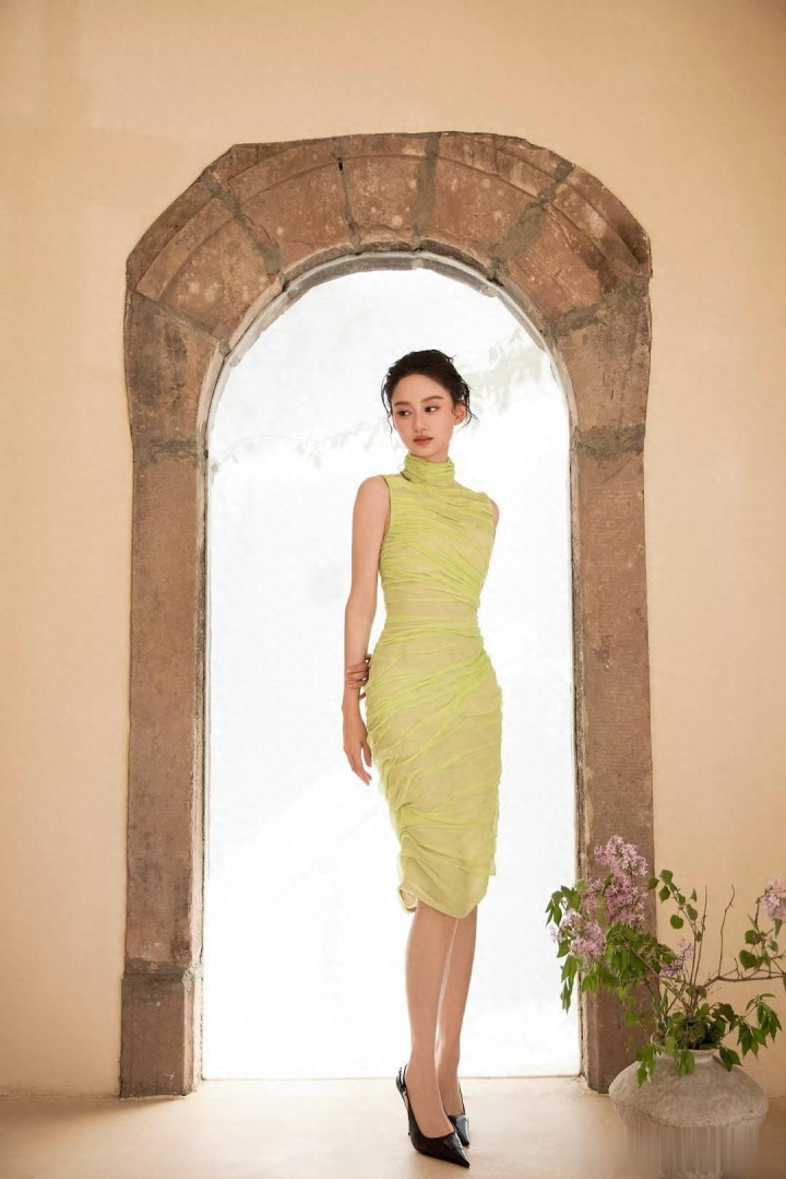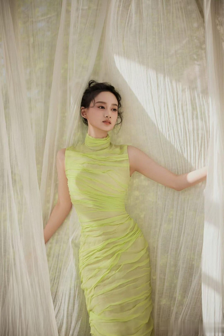 夏梦, 身着荧光绿褶皱礼服, 每一帧美的不要不要的!