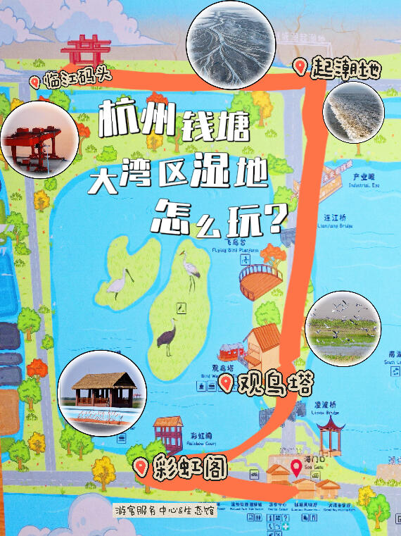 推荐路线:彩虹阁→观鸟塔→望海潮(江边)→临江码头