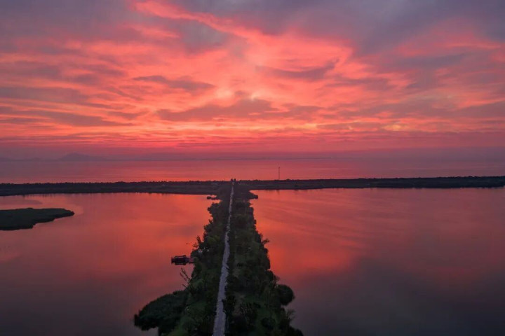 作为地处杭州最东部的湿地,独特的地理位置赋予了它“杭州最早见日出”的专属优势:在这里迎接晨光,比西湖的日出足足早约2分钟,能让你抢先一步拥抱杭州的第一份清晨浪漫。