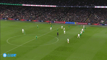 第39分钟,爱尔兰反击机会,奥贝恩禁区左侧内切兜射远角中柱↓