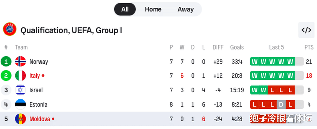 本场比赛过后,意大利依旧落后挪威3分排名第二,最后一轮意大利将正面对决挪威,但意大利比挪威少17个净胜球,意大利需要净胜挪威18球,才可以头名晋级,否则将参加附加赛。