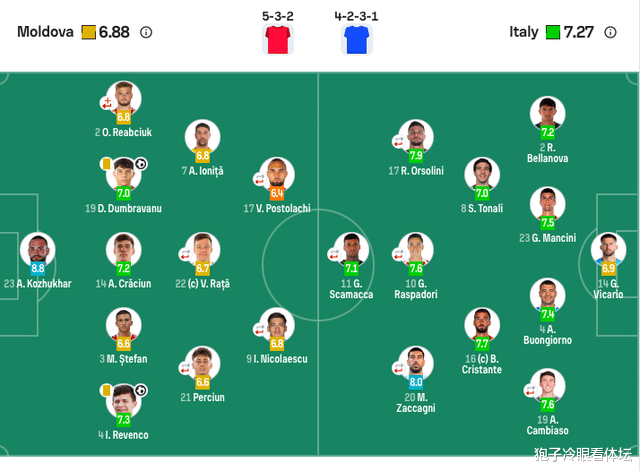 第60分钟,意大利再次打出流畅配合,摩尔多瓦的防守前仆后继,斯卡马卡的射门又被封堵。