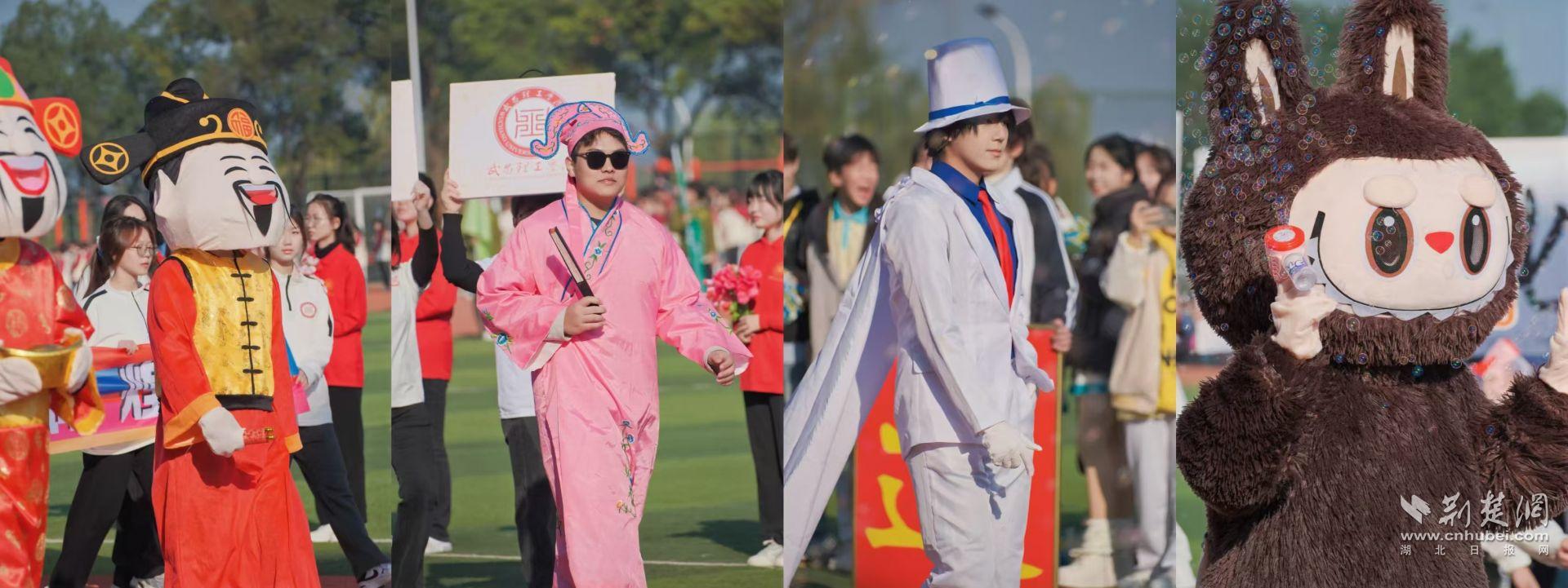 人工智能学院带来的机械狗“小智”成为全场焦点。伴随音乐节拍,它精准完成抬腿、摆臂、旋转等系列动作,机械结构的利落律动与学生舞姿相映成趣,科技与人文的共振引得全场喝彩。此外,“四大才子”“拉布布”“铠甲勇士”等特色服装的表演者也陆续上场,与师生展开热情互动。